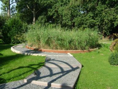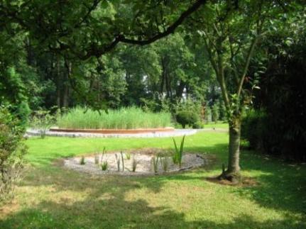 Eine Pflanzenkläranlage rund Vertikalfilter mit Sickermulde, Familie Lübcke, Krefeld 2005